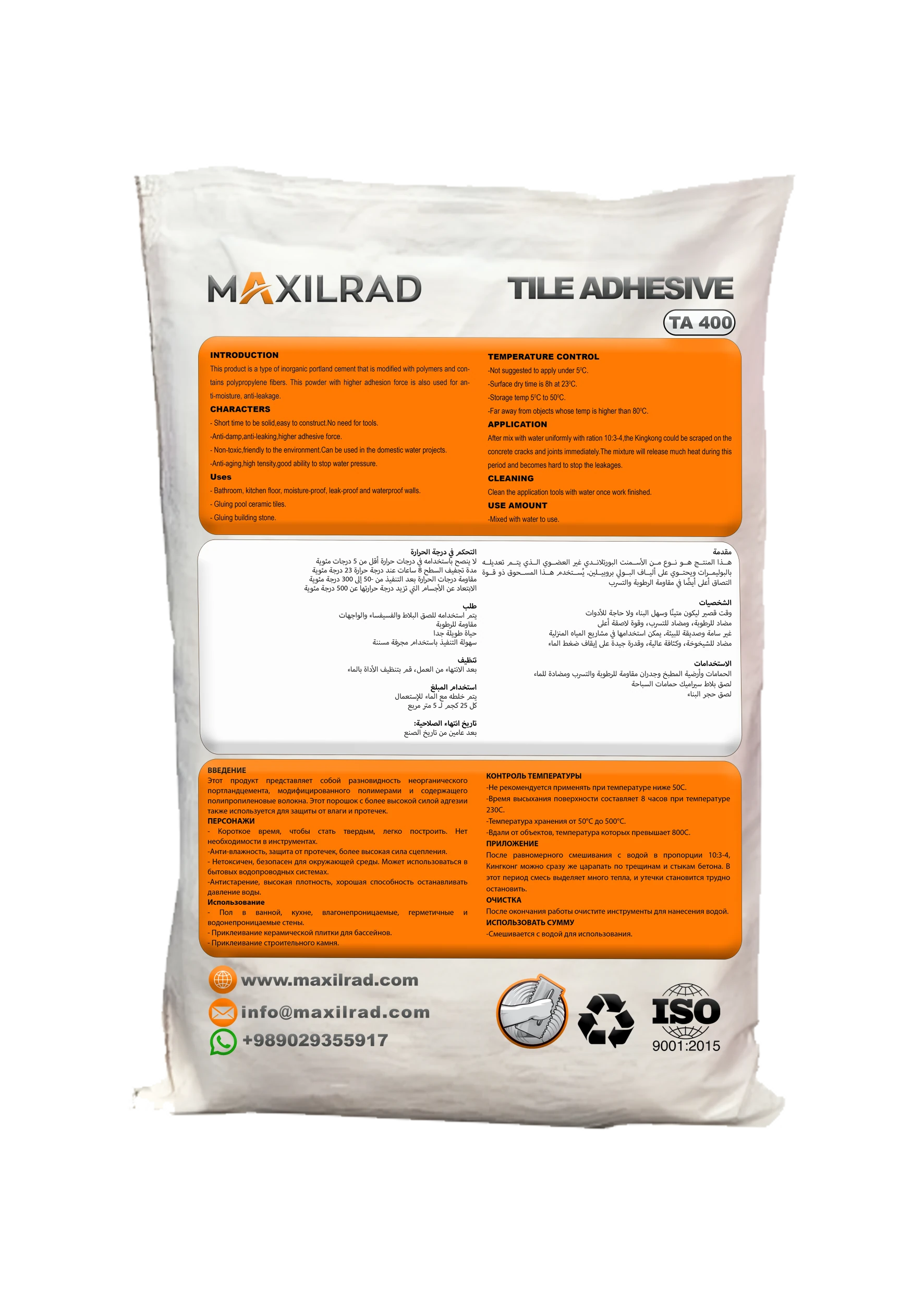 با انتخاب چسب کاشی TA400 از برند Maxilrad، از کیفیت و عملکرد برتر در نصب کاشیها بهرهمند شوید.